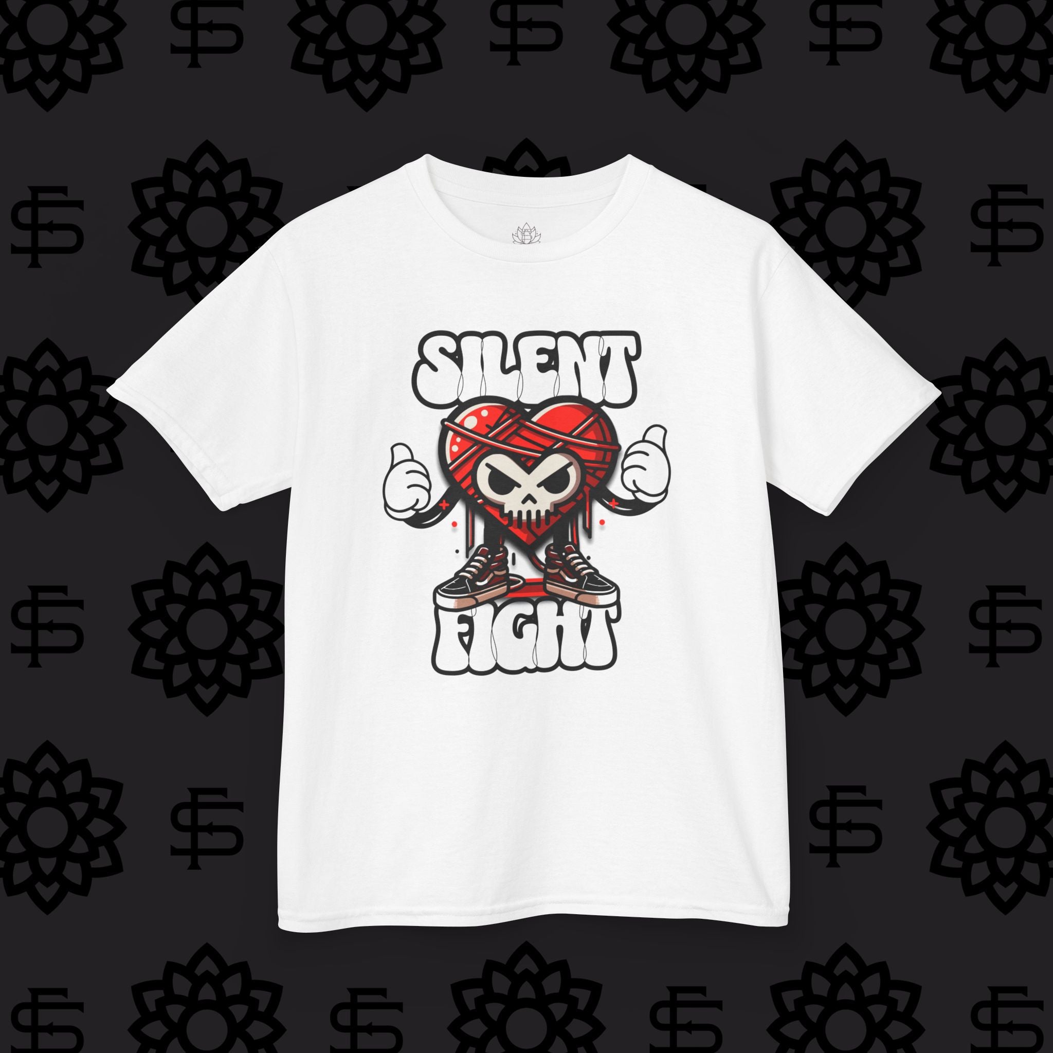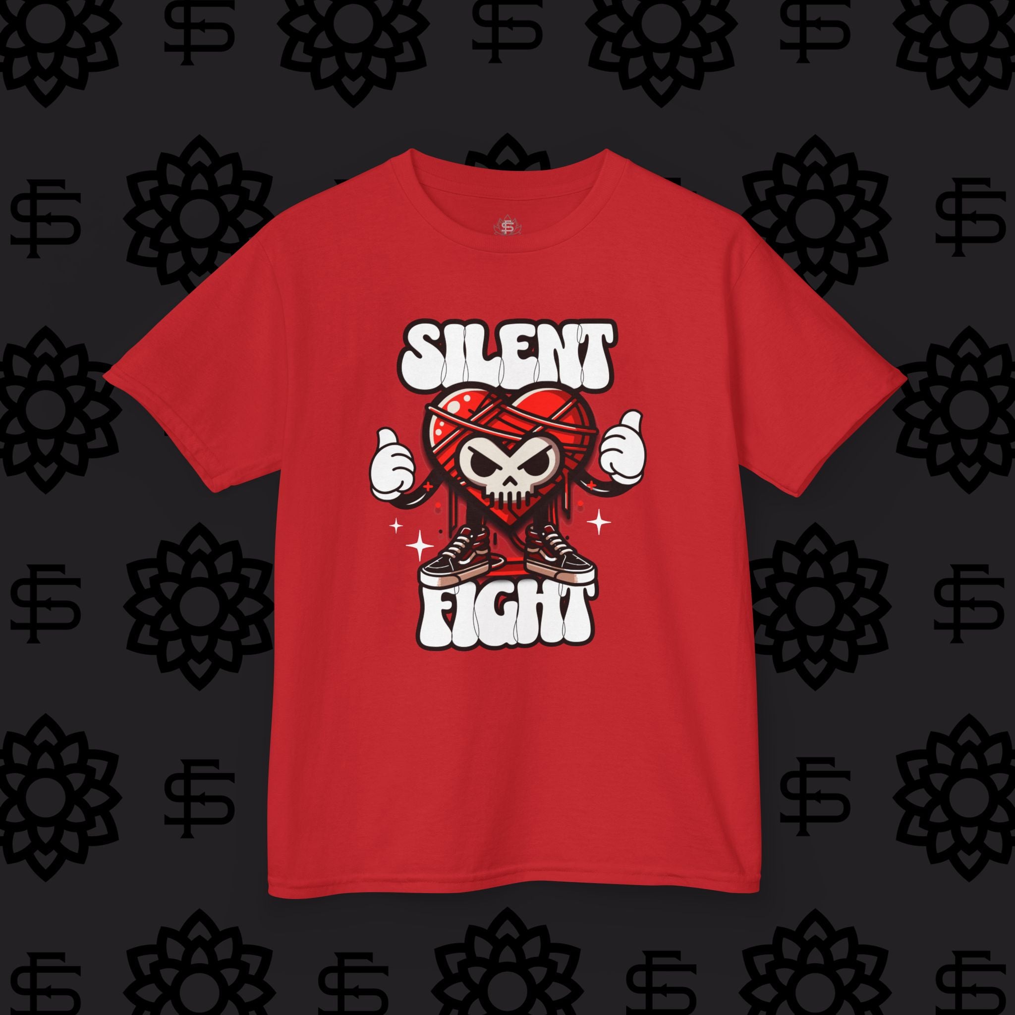 In order to bring appeal to the kiddos about the japanese folklore "Red Thread Of Fate" we knew we had to do something fun. Thus, our new mascot "Aito" was born!! His heart shaped body is wrapped in the mystical red thread or "Akai Ito" (Which is also where we got his name lol) representing the unbreakable bond between individuals. Both stylish and meaningful this T is pefect for anyday!!